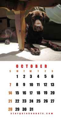 | If you like chocolates you'll love our calendar!! Click on any page to see it larger. Your back button to return. The real calendar is 12" x 24" printed on 100# paper coated both sides at 300 dpi. It is absolutely gorgeous, and will put a smile on your face every time you check the date. It makes a great stocking stuffer and a nice gift for any lab lovers.