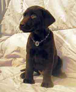Male 9.5lbs. Curious explorer. Playful and active. Good nose. Hunt/retrieve prospect. Longer nose, not quite as blocky. Kids dog, supervise at first with kids under 2. |