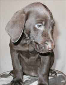 Male 9.7 Playful puppy Mouth dog Good nose Quite curious Smart puppy Good family dog Hunt prospect Above average energy. |